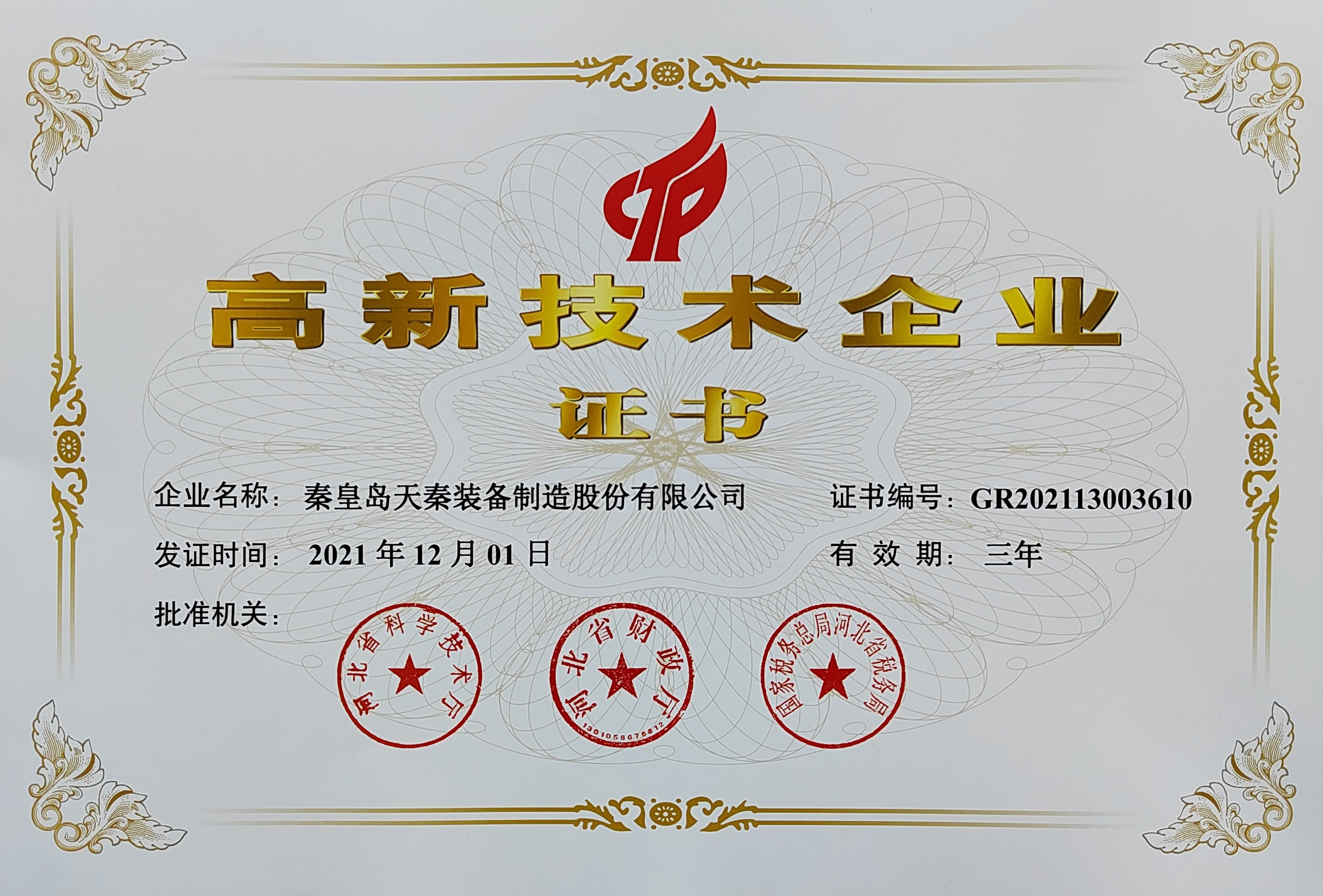 • 秦皇島天秦裝備制造股份有限公司創(chuàng)立于1996年,總部位于河北省秦皇島市經(jīng)濟(jì)技術(shù)開發(fā)區(qū),秦皇島廠區(qū)占地4萬(wàn)平方米,擁有3萬(wàn)平方米的標(biāo)準(zhǔn)廠房、辦公樓和工程技術(shù)研發(fā)中心;分部天津廠區(qū)位于天津市靜海經(jīng)濟(jì)開發(fā)區(qū),占地2萬(wàn)平方米,擁有1.6萬(wàn)平方米標(biāo)準(zhǔn)廠房。 公司通過了GB/T 19001質(zhì)量管理體系及GB/T 24001環(huán)境管理體系認(rèn)證,是國(guó)家高新技術(shù)企業(yè)、河北省軍民融合產(chǎn)學(xué)研用創(chuàng)建基地,建有省級(jí)院士工作站。